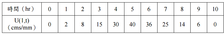 【已刪除】四、某集水區的 1 小時單位歷線 U(1,t)如下表所示: