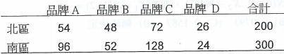 【已刪除】9. (15%)硏究消費者居住地區對某產品四種品牌的偏好程度是否有差異,自北區、 南區分別抽出200人、300人,其品牌選擇人數如下: