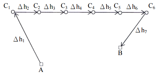 增加。現自水準點A進行水準測量至水準點B。A, B兩點高程分別為 100.000 m及 102.000 m。測線AC