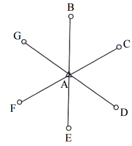 =300°, 且各方位角中誤差皆為 20.6′′ 。另,距離AB=AC=AD=AE=AF=AG=100.000 m, 且各距離中誤差皆為 0.010 m。假設A點坐標誤差小至不計,請計算B, C, D, E, F, G各點 坐標(X, Y)之中誤差σ