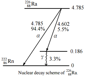 Ra的蛻變圖如下,請問 1mg的鐳-226 衰變了一天,求會有多少個
