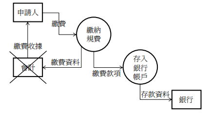【已刪除】三、在下面的這張資料流程圖中,有一個錯誤。請問為什麼繳費資料不可以流出給會計, 然後再由會計開立一張收據給申請人?依妳/你的看法,這張圖應該如何修正?請說 明為什麼。(25 分)