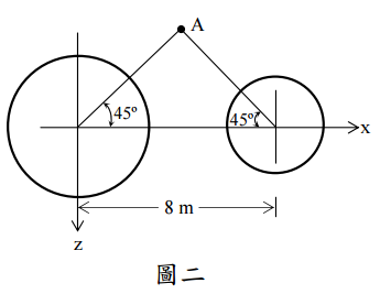 【已刪除】六、圖二為兩相互平行隧道,大隧道半徑 3 m,小隧道半徑 2 m,假設本區岩盤開挖前 現地應力為均向,即P