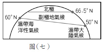 32.圖(六)中的數字代表4個城市,分別為美國西北部的西雅圖、南非西南角的開普敦、臺灣高雄、陝西的西安,根據圖示資料判斷圖中②應該為下列哪一個城市?