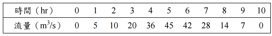 /s, 試推求此場降雨於該流域所造成之洪水歷線?(20 分)