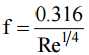 式中Q為流量,D為圓管直徑,k、a和b為係數。而平滑圓管的摩擦係數f與雷諾數 Re的關係為: