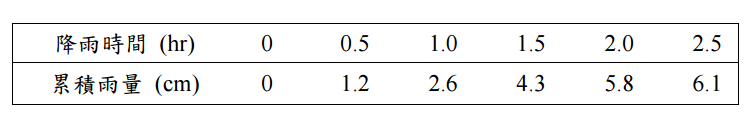 的流域經一場暴雨所得到的累積雨量資料如下表所示: