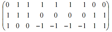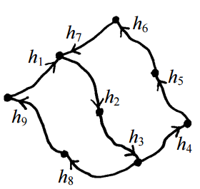 【已刪除】一、如大地水準測量圖所示,每段路線約略等長,因此可視所測的高程差 , hi i∈{ K 9,,2,1 } 權重相等。倘若水準圈高程差能夠閉合,且所屬線性的組合 3×9 係數矩陣為: