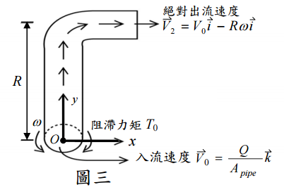 ,請以雷諾轉置定理推 導出該單臂噴水系統的旋轉角速率