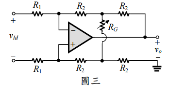 【已刪除】三、圖三使用理想之運算放大器,請推導其電壓增益 v