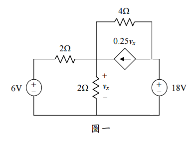 【已刪除】一、圖一中,試求出vx電壓值。(20 分)
