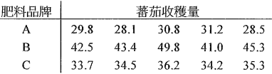 【已刪除】2.爲比較不同品牌(A、B、C)的肥料對蕃茄收穫量的 影響,於是將一塊土壤肥沃度相似的土地分割成大 小相等的15塊,每塊土地均種植相同品種的番茄 後,隨機以A、B、C三種不同品牌的肥料進行施 肥,每種品牌肥料分別施肥5塊土: