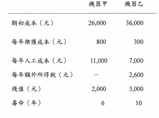 【已刪除】九、某工廠被推薦使用下列兩種相等服務的機器之成本如下: