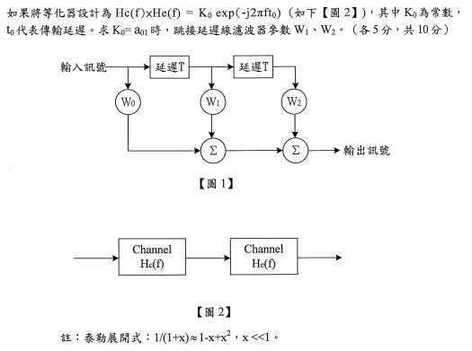 【已刪除】三、在微波通信系統中,由於發射器與接收器之間有多重傳播路徑,造成通信系統失真。假設 有一通道,其輸入為S(t)、其輸出為xO-a