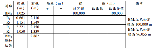 【已刪除】一、試完成並驗算下列水準測量觀測手簿。BM