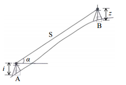 【已刪除】四、示意如圖,A 為已知點,高程為 100.000 m,且假設無中誤差,斜距 S 及中誤差為 200.000 m ± 0.010 m,儀器高與覘標高及相應之中誤差分別為 i=1.500 m ± 0.005 m, z=1.300 m ± 0.005 m,仰角值 α=30°00'00"。若擬控制所求 B 點高程之中誤差不大 於 0.010 m,則仰角 α 之中誤差不得大於若干?計算之。(20 分)