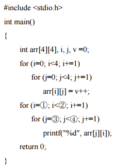 31 下列以 C 程式語言撰寫之程式中,請問①②③④中,應填入什麼數字,可使程式執行的結果輸出 9 13 10 14?