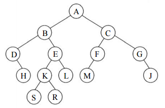 19 若對下圖之二元樹(Binary tree)進行“中序走訪(Inorder traversal)",則輸出為何?