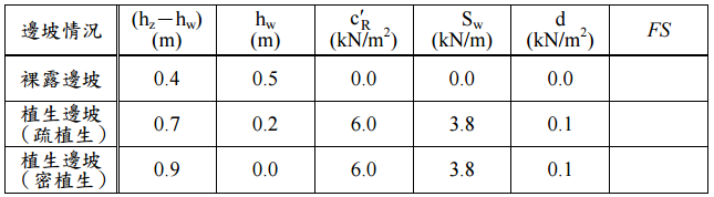 ⑶由上面計算表中之資料,說明植生對邊坡土層、自然環境及穩定性之影 響。(5 分)