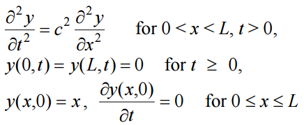 【已刪除】六、假設人的前十字韌帶可視為一均勻圓柱狀、長度為 L,在時間為零時受到一力的拉 伸,韌帶的運動可以用下列的偏微分方程表示;其中,c