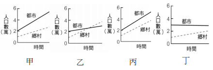 29.下圖是某四個地區的都市和鄉村人口成長趨勢圖。哪一 個地區的都市化歷程速度最快?