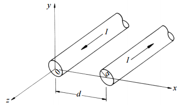 【已刪除】三、如圖所示,兩根半徑均為 a 的平行傳輸線載有方向相反的電流 I,其軸心相距為 d, 假設d >> a,試求傳輸線每單位長度的內部電感值及外部電感值。(20 分)