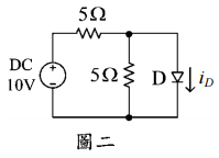 【已刪除】二、如圖二所示之直流電路,其中 D 為理想的二極體,請問通過二極體的電流 i