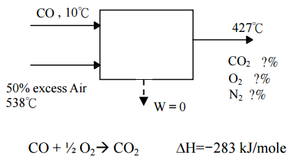 C 的一氧化碳,使用 50%過量的空氣 (1.5 倍的化學需氧量),假設 CO 完全燃燒成 CO