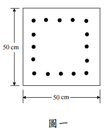 【已刪除】二、一方形柱配置 16 支 D32 主筋如圖一所示,請依耐震設計特別規定配置橫向鋼筋, 並繪圖說明。已知橫向鋼筋降伏強度 fy= 2800 kgf/cm