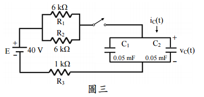 【已刪除】四、圖三電路其初始時電容器處於未充電狀態,開始充電後,試表示 v