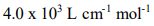 34.某化合物的莫爾吸收係數為 ,當使用 2.5 cm容槽,該化合物的濃度應為多少, 才能夠使溶液的穿透率等於 10%? (A)(B) (C) 1 x 104 M (mol/L) (D) 1 x 105 M (mol/L)