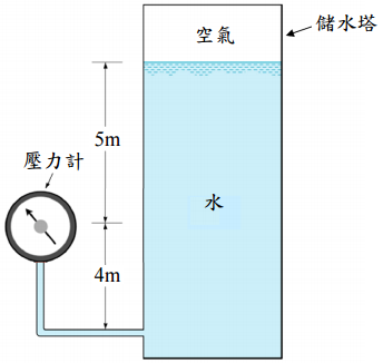 【已刪除】三、STM 公司為從事 IC 封裝業務之企業,由於製程需要,擬新設置一儲水塔供使用, 詳如下附圖。壓力計目前之讀值為 80 kPa,請問,儲水塔內空氣之壓力(kPa)為 何?(20 分)