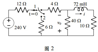 時,電路已達穩定狀態,求 t ≥ 0 之 v