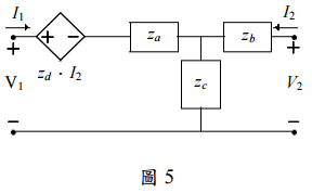 【已刪除】五、z 參數可等效如圖 5 之電路,若 z 參數已知,則 z