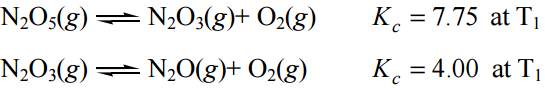將 4.00 莫爾五氧化二氮放在 1.00 升容器中加熱至定溫 T