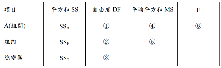【已刪除】⑴請將下表繪於試卷上,並將答案填入①~⑥等 6 個空格。(12 分)