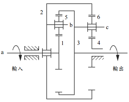 【已刪除】三、如下圖所示之齒輪機構,令 Ni 代表桿件 i 之齒數、桿件 1 為輸入桿、桿件 3 為輸出 桿,請求出 ω