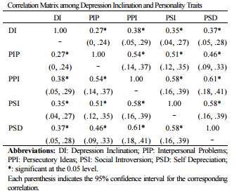 【已刪除】三、下表為來自某論文有關憂鬱傾向(Depression Inclination)與人格特質(Personality Traits) 變項相關之研究結果,問其中有一嚴重的錯誤是?(10 分)