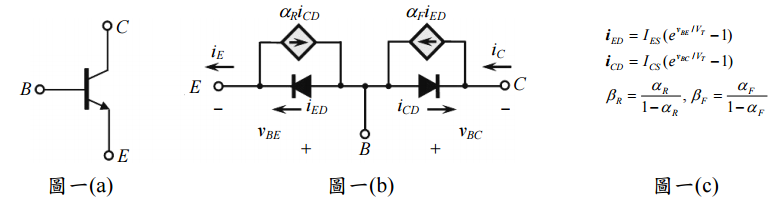 【已刪除】一、圖一(a)NPN 電晶體之埃伯斯莫爾(Ebers-Moll)模型如圖一(b),電流之數學式與電流 增益β