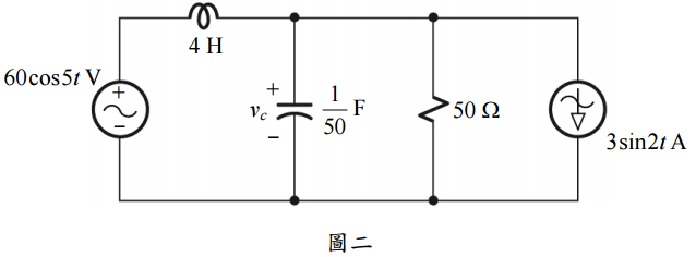 【已刪除】二、如圖二之電路,利用重疊原理(superposition theorem)求取電壓波形 v