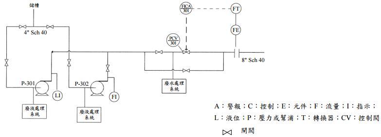 【已刪除】三、下圖為簡要 PID 圖,請針對圖面部分指出其錯誤與正確表示方式,並說明原因(註: 真正 PID 圖很複雜,針對此圖即可,無須詳述 PID 圖之可能細節)。(20 分)