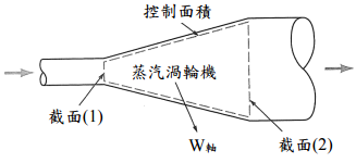 【已刪除】三、蒸汽渦輪機如圖所示,截面(1)之流速為 30.0 m/s,焓(enthalpy)為 3400 kJ/kg。截 面(2)之流速為 60.0 m/s,焓為 2500 kJ/kg。兩截面高程相同,過程設為絕熱,試求 每單位質量蒸汽的輸出功 W軸為何?(20 分)