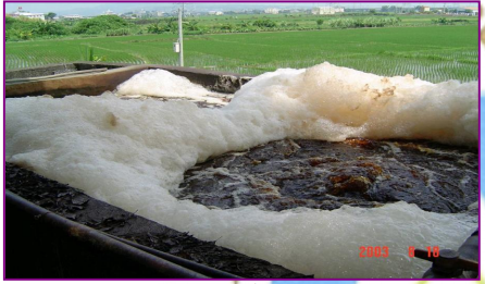 【已刪除】9 圖中曝氣池泡沬多且泡沫濃厚雪 白,請說明其可能原因及改善對 策?