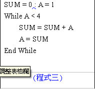 【已刪除】7. (程式三)執行後,SUM的值為何?_______
