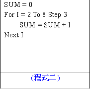 【已刪除】6. (程式二)執行後,SUM的值為何?______