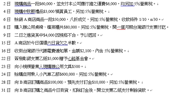 【已刪除】3.欣欣商店為一般營業人,試將01年3月份交易,記入日記簿。(@分錄3分,共36分)