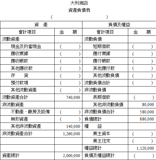【已刪除】2.根據下列大利商店102年底結帳後的會計科目餘額(本期損益已結轉業主往來),編製資產負債表。