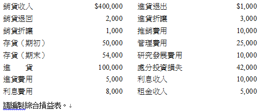 【已刪除】1.下列為小飛象公司101年度的損益資料。單位:新台幣元 請編製綜合損益表。