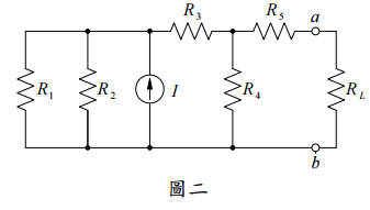 【已刪除】二、考慮如圖二所示電路,已知 I = 5 A、R