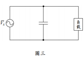 【已刪除】三、考慮如圖三所示電路,使用電容器改善負載之功率因數,已知